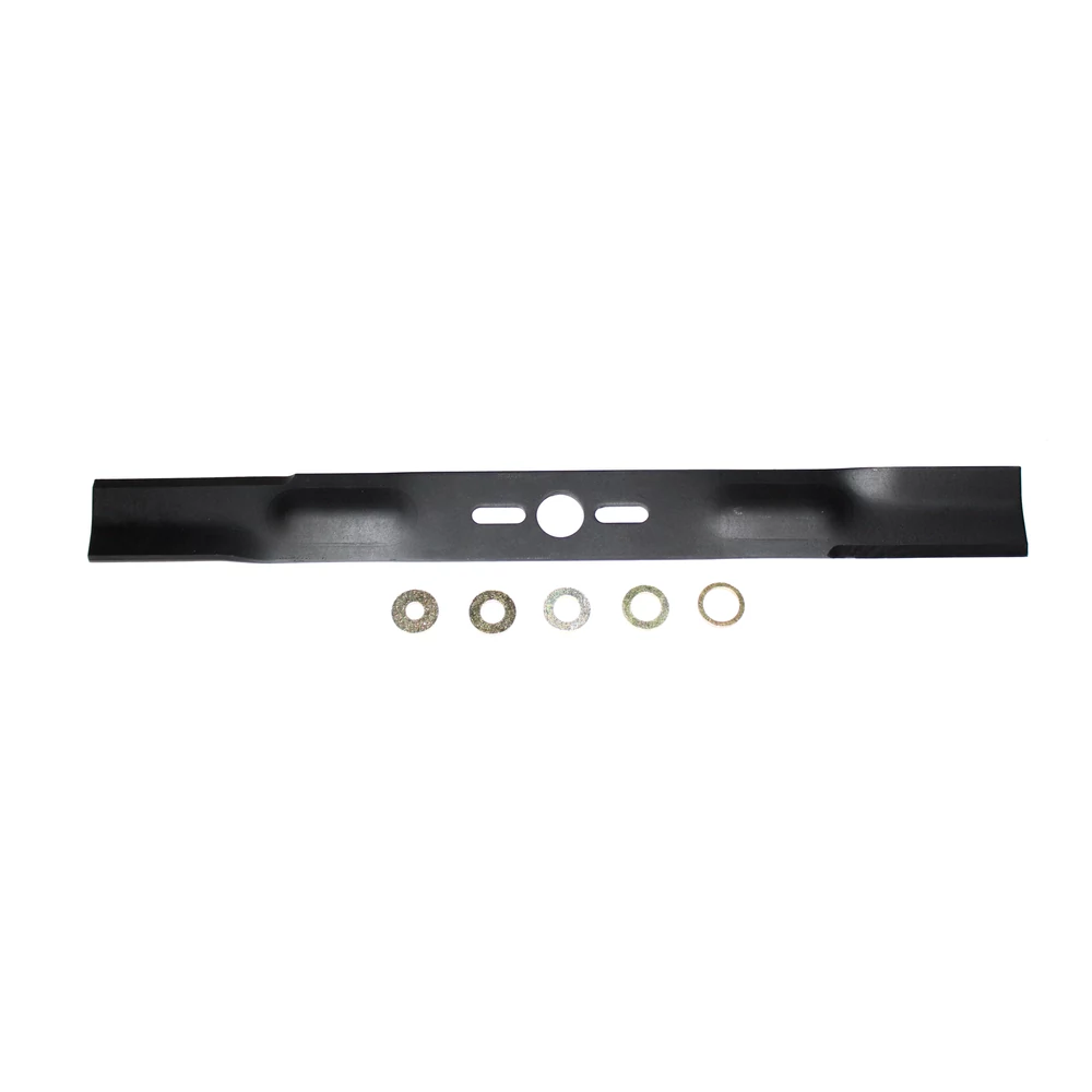 Univerzális, egyenes fűnyírókés, 5 darab különböző méretű szűkítő betétgyűrűvel.