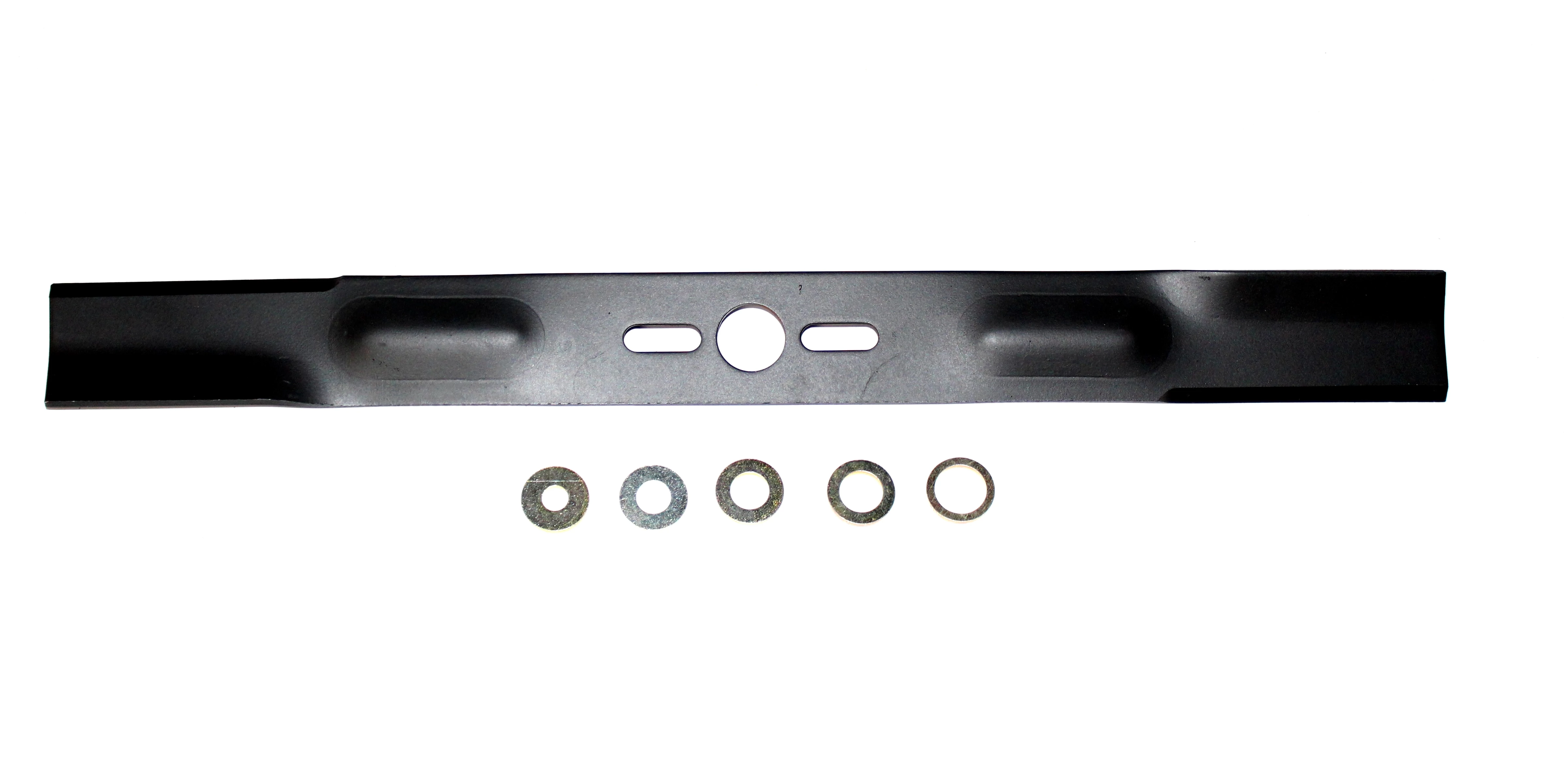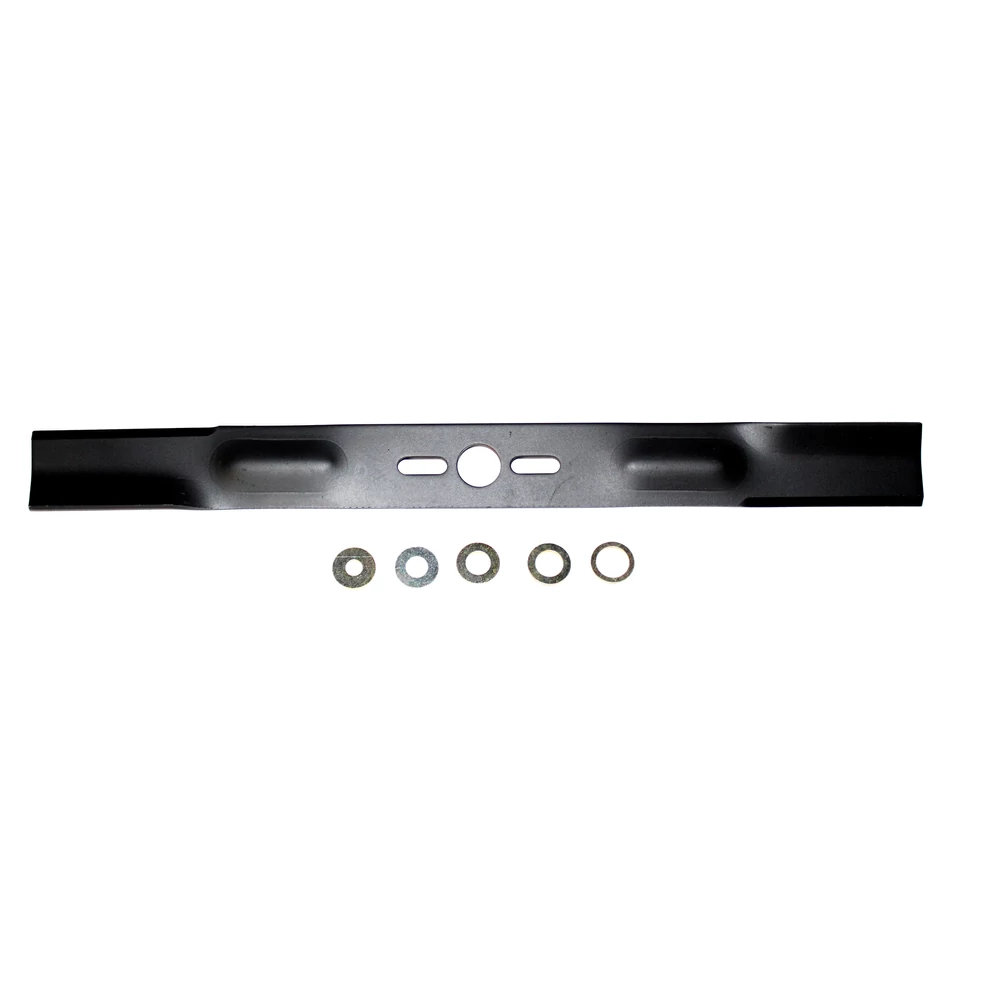 Univerzális, egyenes fűnyírókés, 5 darab különböző méretű szűkítő betétgyűrűvel.